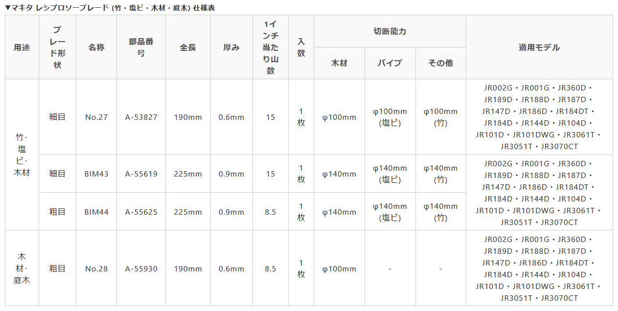マキタ レシプロソーブレード (竹・塩ビ・木材・庭木)