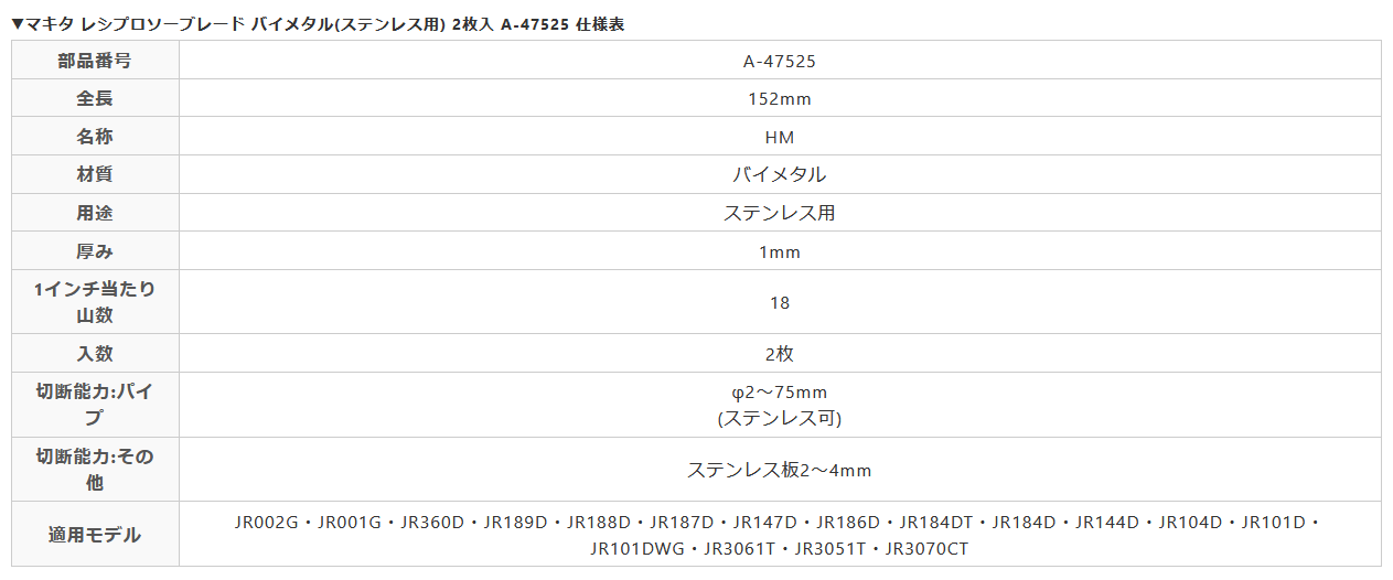 マキタ レシプロソーブレード バイメタル(ステンレス用) 2枚入