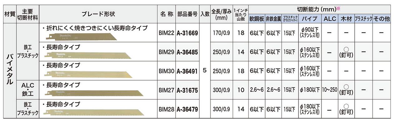 マキタ レシプロソーブレード バイメタル(鉄工・ALC・プラスチック) 5枚入