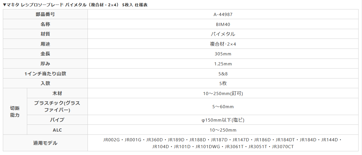 マキタ レシプロソーブレード バイメタル(複合材・2×4) 5枚入