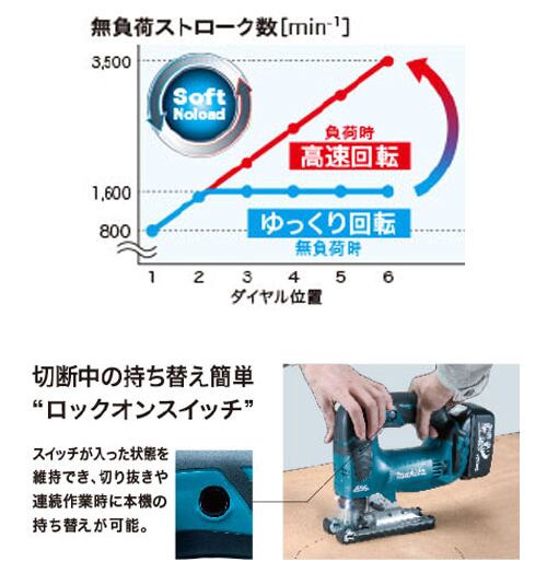 部材にあたるまでは、ストローク数を抑制。切り始めの墨線合わせが簡単。そして、切断し始めると高速切断。